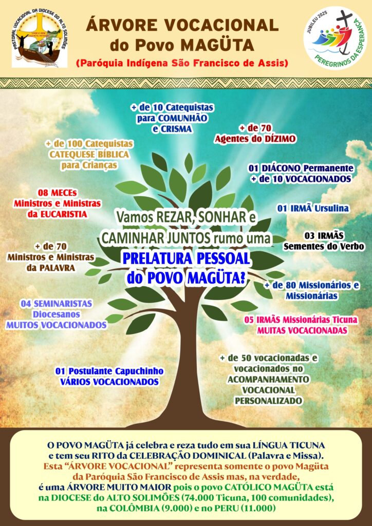 Com o simples desejo fraterno de ajudar neste DISCERNIMENTO, partilhamos esta ” ARVORE VOCACIONAL” que representa um pouco os frutos de nossa presença missionária – pelo menos nos últimos 15 anos – e nosso SONHO ECLESIAL de ver amadurecer uma Igreja sempre mais inculturada e com os próprios POVOS INDÍGENAS como PROTAGONISTAS!